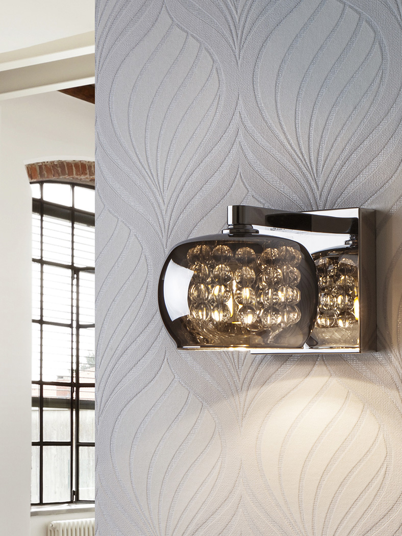 Applique in acciaio brillante. Paralume di vetro a specchio