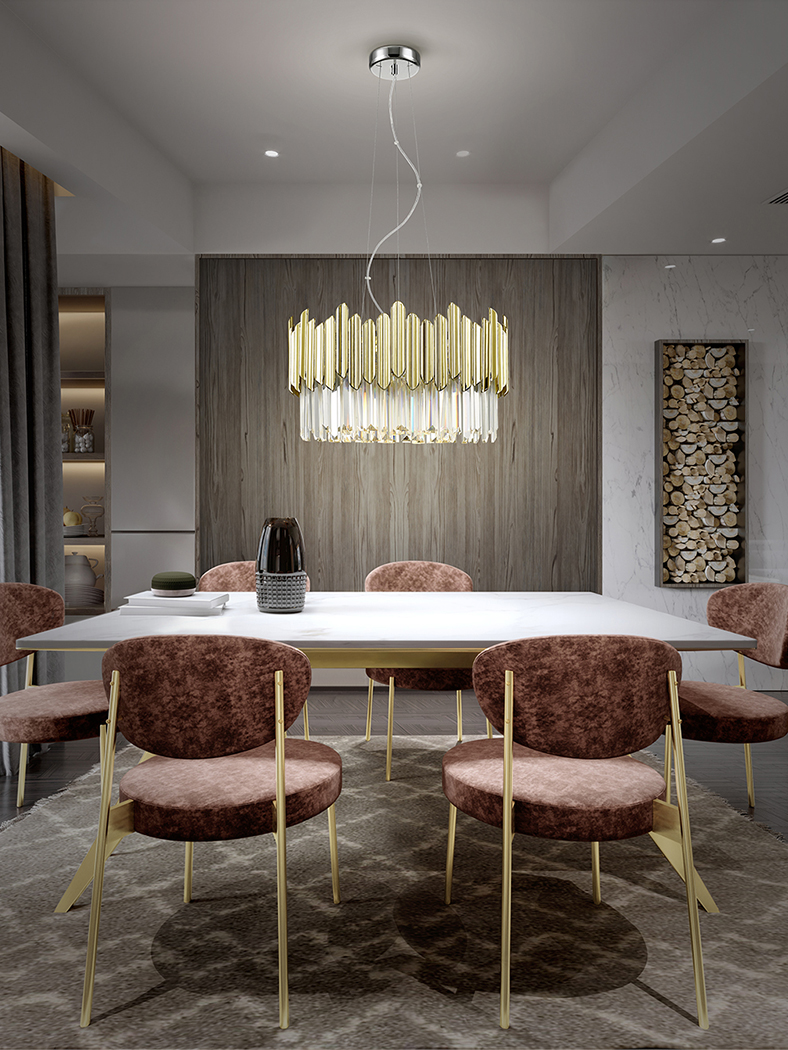 Lampada a sospensione in metallo cromato. Paralume formato da prismi di vetro sfaccettato sormontati da abbellimenti in ABS dorato. ·Questo articolo include 6 LED G9 6W TEMPI DI CONSEGNA 15-30GG