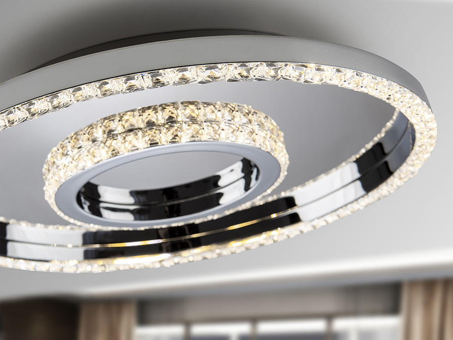Diffusore composto da parti in vetro sfaccettato. 26W LED. 1.100 lumen. 3.000 K.
