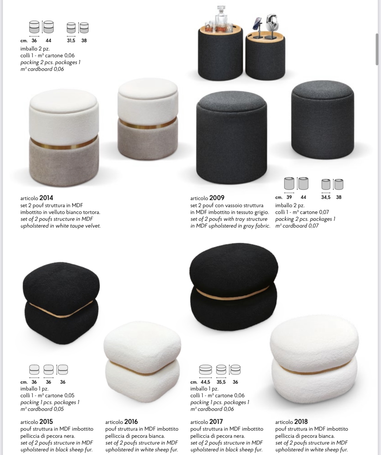 ARTICOLO 2017 POUF IN STRUTTURA MDF IMBOTTITO IN TESSUTO PELLICCIA DI PECORA NERA