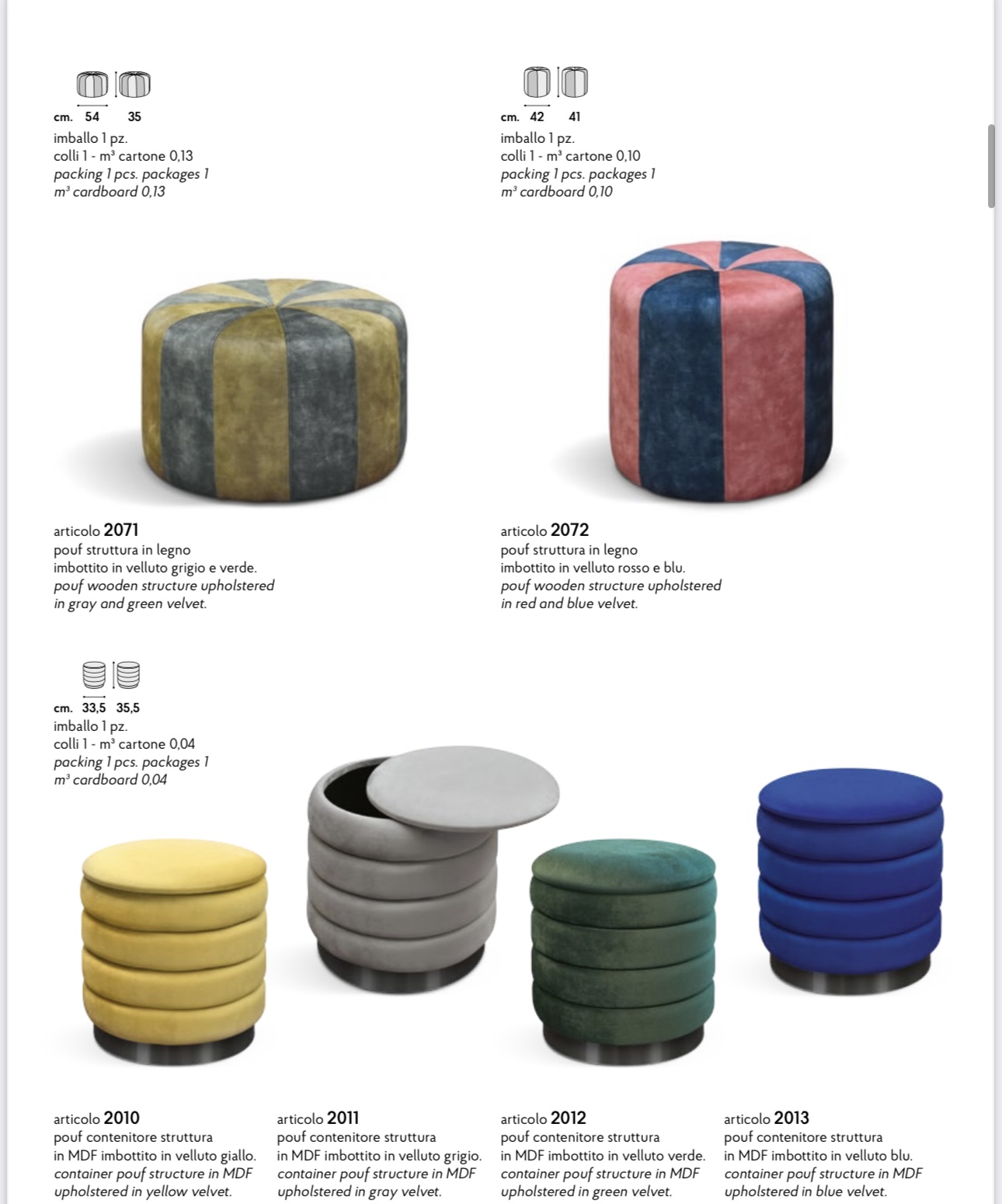 POUF IMBOTTITO IN TESSUTO VELLUTO A BICOLORE GRIGIO-VERDE2071 ROSSO-BLU2072 POUF CONTENITORE IN VELLUTO STRUTTURA IN MDF IMBOTTITO GIALLO-VERDE-GRIGIO-BLU