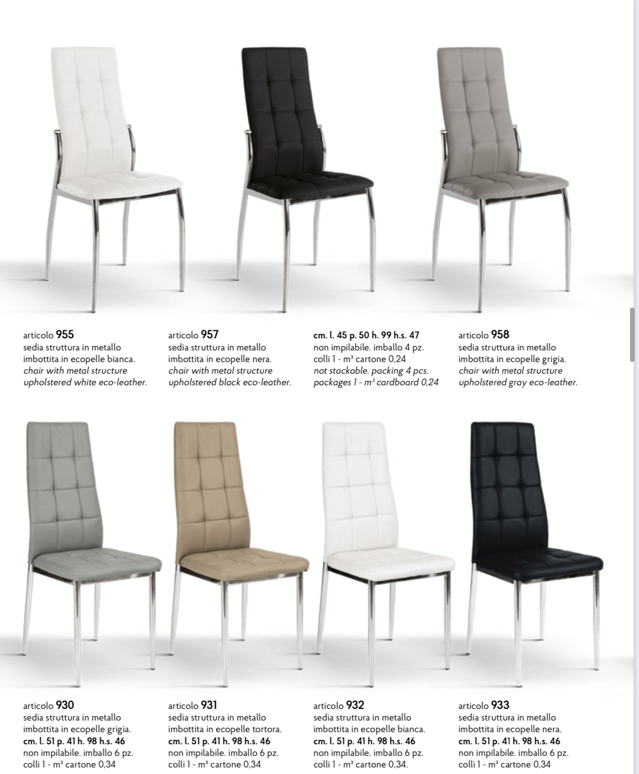 SEDIA IMBOTTITA STRUTTURA IN METALLO ART 930-931-932-933 SEDIA IMBOTTITA CON STRUTTURA LATERALE IN METALLO ART 955-957-958 CM L51 P41 H98