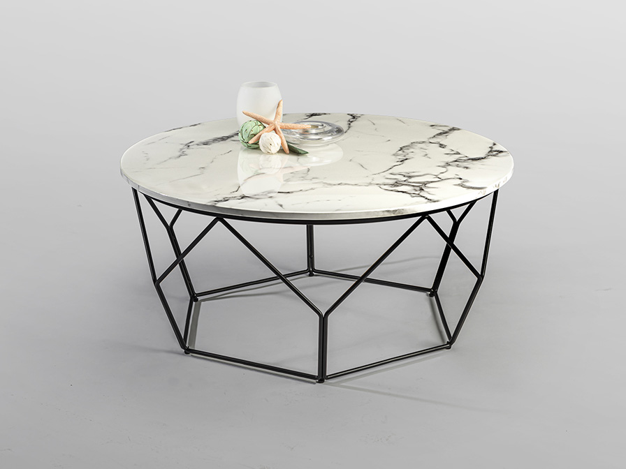 Tavolino rotondo da salotto, in metallo color nero opaco.