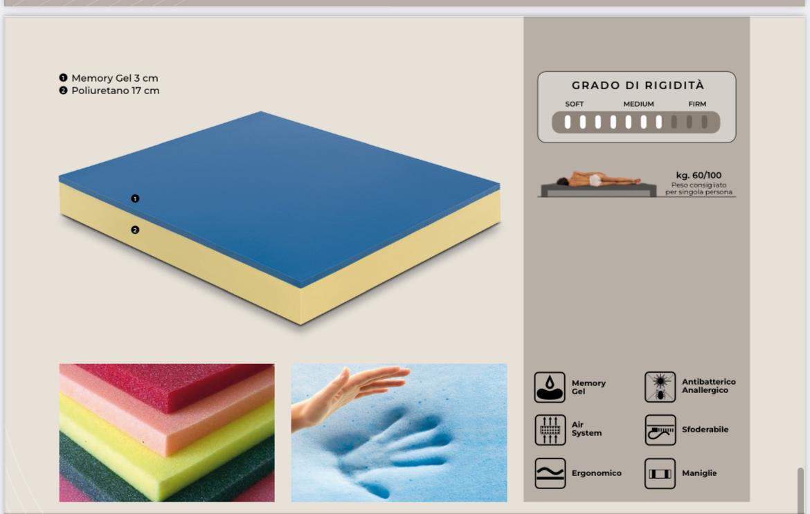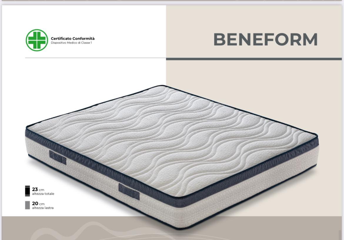 Schiuma con microparticelle di gel inglobate nella mescola, che ne aumentano la sensazione di freschezza. Beneform è un materasso di nuova